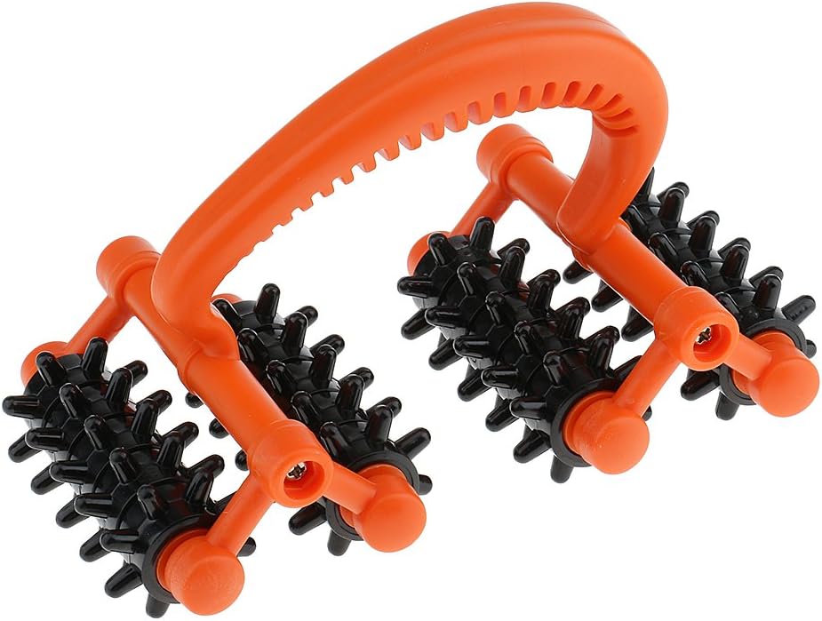 Arm massage device with multiple wheels for body relaxation, skin invigoration, and celluite reduction.